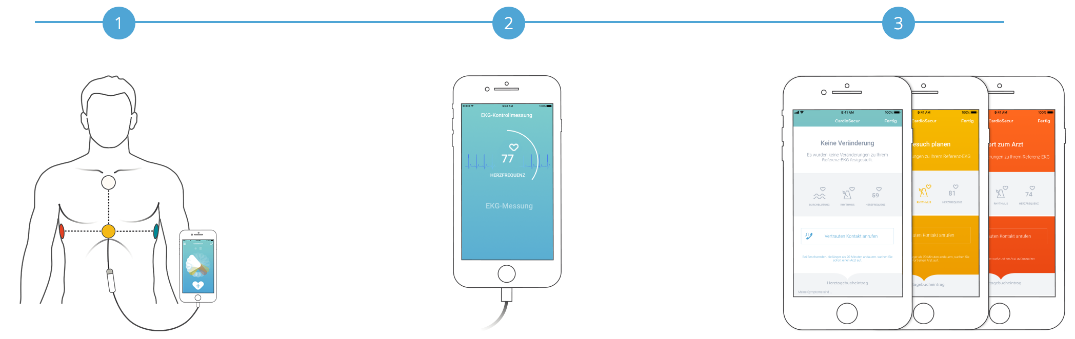 Entscheidend für die Entwicklung einer chronischen Herzinsuffizienz ist das Ausmaß der Herzschädigung nach einem Herzinfarkt. Durch frühzeitiges Erkennen von Durchblutungsstörungen und schnelles Handeln bei einem Infarkt, verhindern Sie größere Herzschäden. Führen Sie schon während des Auftretens von Beschwerden eine fundierte EKG-Messung durch. Achten Sie darauf, dass die mobile EKG-Lösung nicht nur Rhythmus und Frequenz, sondern vor allem lebensbedrohliche Durchblutungsstörungen wie einen Herzinfarkt erkennen kann. Nur EKG-Systeme mit 12 Kanälen oder mehr können dies leisten.1