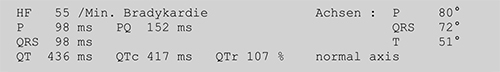 The ECG parameter measurement enables you to automatically determine all common ECG segments (HF, Axes, P, PR, QRS, QTc and QTr). It is based on the licensed HES-algorithm.