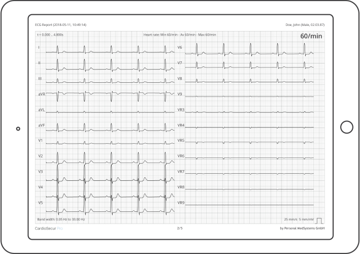 Each ECG is compared with the previously stored reference ECG to detect changes. Based on this, the patient receives immediate feedback as to whether a visit to the doctor is necessary. As a doctor, you receive comprehensive ECG data (12-lead plus V7-V9). CardioSecur minimises delays and resulting heart damage.